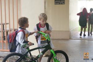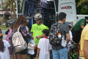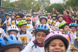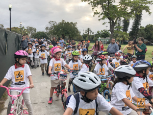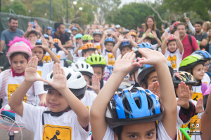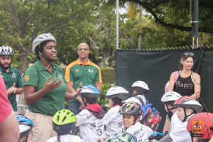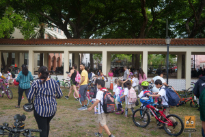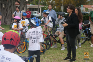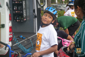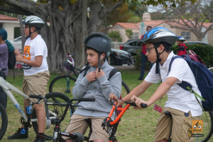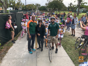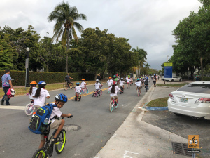 This was a big one! 75 kids from Fienberg-Fisher K-8 Center rode to school today, celebrating Florida Bike Month, Bike to School Day, and the great feeling one gets when riding a bicycle outdoors. We were really fortunate to have awesome support from the school, the Miami Beach Police Department to protect the ride, Velofix to tune up the kids’ bikes, and Miami-Dade’s Bike305 to co-lead the ride.