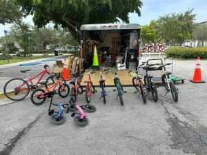 This rodeo - our second in partnership with the City of North Miami Police Department and North Miami Library - featured a pop-up traffic garden incorporated into the library parking lot and indoor riding skills education classes as part of the City's summer camp experience.